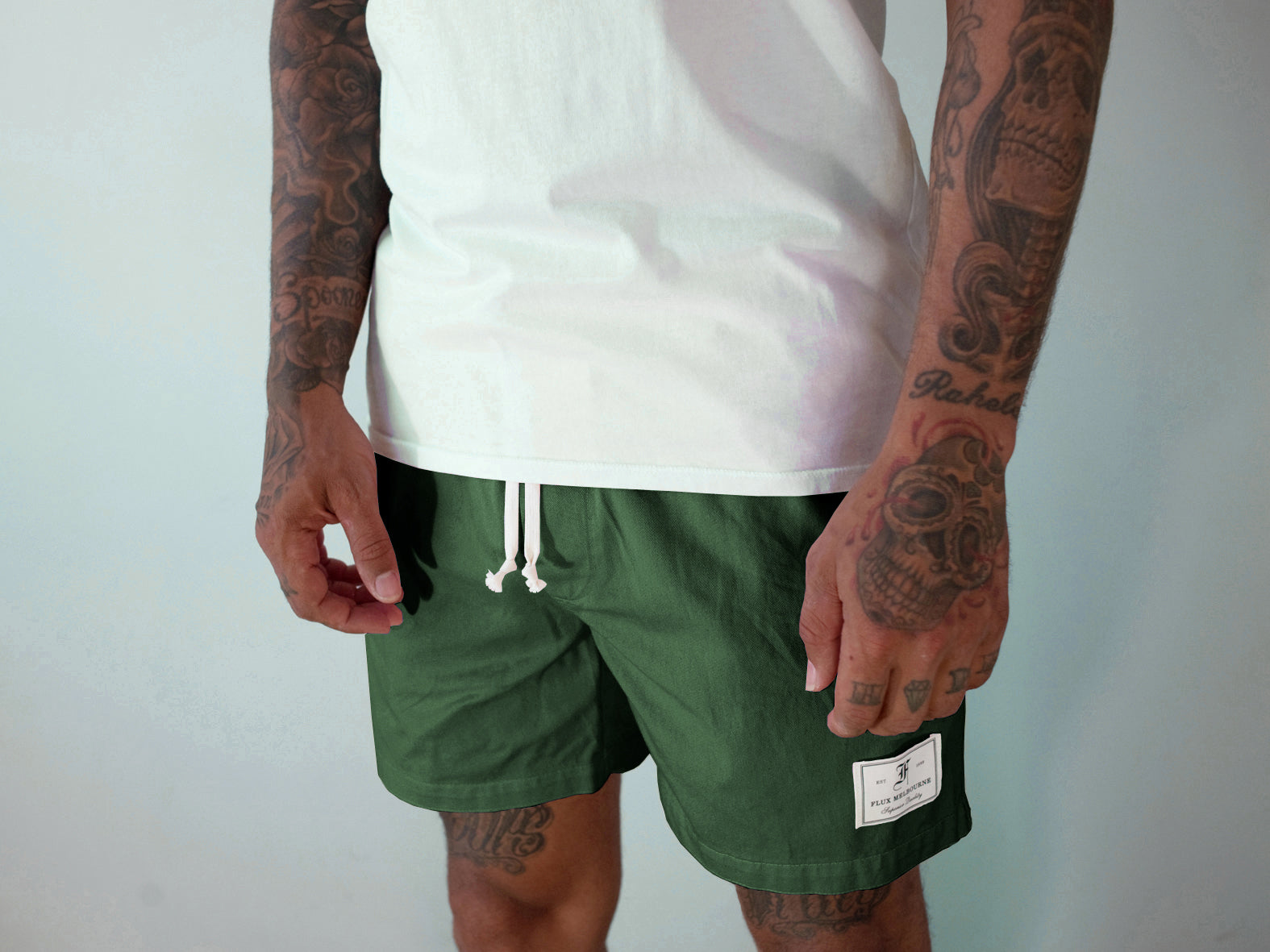 • Washed back cotton drill short. An everyday classic. Features angled side pockets, wallet back pocket, fly detail and contrast rope tie. Slim fit, pre-shrunk. Made in Melbourne.